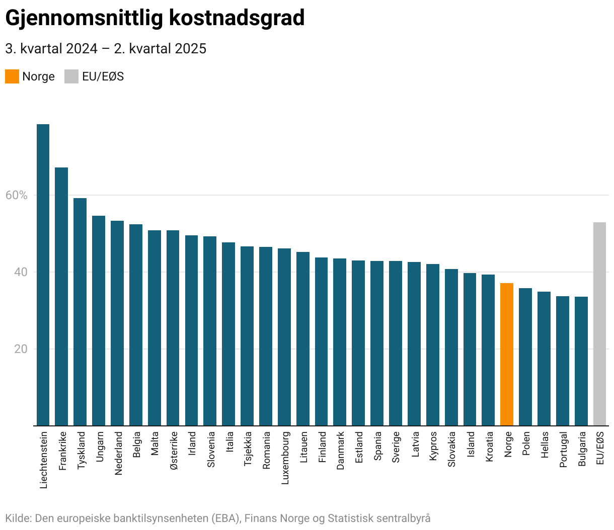 De norske bankene har automatisert og digitalisert store deler av driften. Det har gitt de norske bankene en av de laveste kostnadsgradene i Europa.